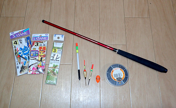 持参道具類(撮影:TSURINEWS関西編集部 松村)テナガエビ釣りの仕掛け