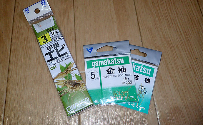 ハリはどの仕掛けでも共通で、テナガエビ専用のものがいいです。また、袖バリの4号程度やタナゴ針でも代用できます。
