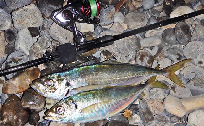 尺級のアジ(提供:週刊つりニュース中部版 APC・伊藤太盛)遠投出来る仕掛けを用いる