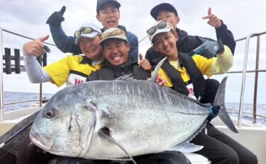 10cm級の小型魚をエサに泳がせ釣りをすると、バラクーダーやカスミアジが釣れるとのことだが、エサになる小魚が釣れず、10時に納竿。