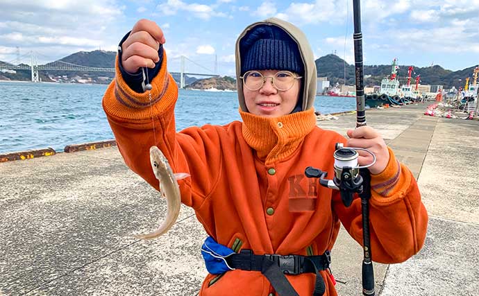 ちょい投げで越冬ギスがヒット(提供:週刊つりニュース西部版・川添直人)ポイント移動するも渋いので納竿