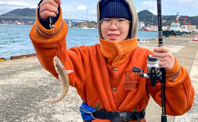 ちょい投げで越冬ギスがヒット(提供:週刊つりニュース西部版・川添直人)ポイント移動するも渋いので納竿