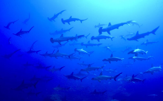 これはシュモクザメが数十匹から数百匹の群れで泳ぐ様子のことで、ダイバーには憧れの景色だと思います。