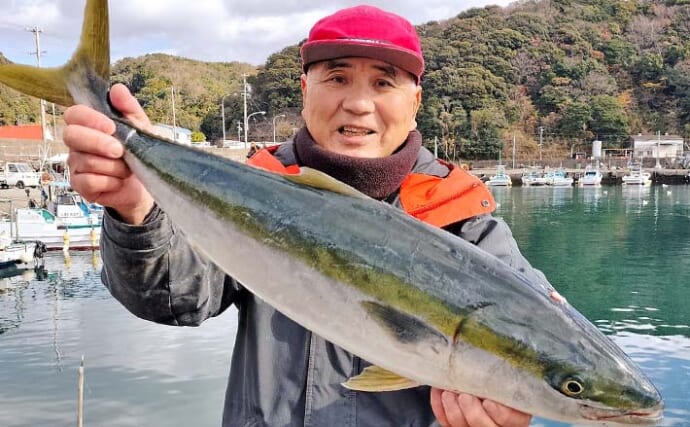 午前7時、奈屋浦沖を目指して出船。20分ほどで青物(寒ブリ、ワラサ)ポイントに到着すると、僚船が3隻ほどいた。