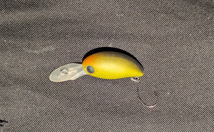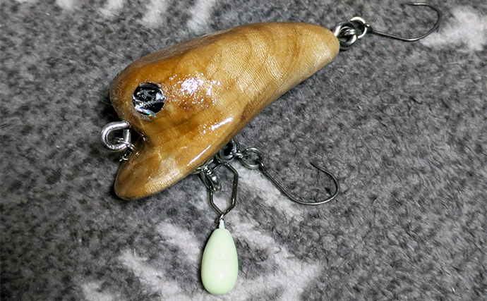 自作のクランクベイト(提供:TSURINEWSライター・田村昭人)メインは、ライトソルトゲームタックルで0.1gから0.5gまでのフェザージグをキャストできるかどうかのタックルテストです。