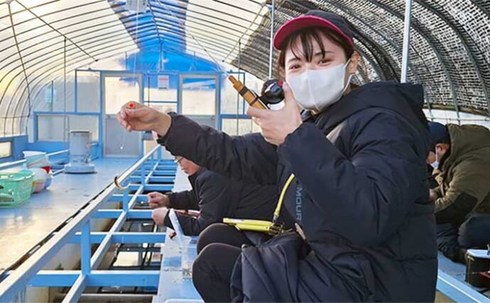 ワカサギヒット(提供:TSURINEWSライター藤岡和貴)繊細な釣りだが、穂先にはしっかりとした明確な当たりが出てなんとも面白い。諏訪湖は長野県の湖沼釣りのなかでも比較的浅い場所での釣りとなるため手返しがキーとなってくる。
