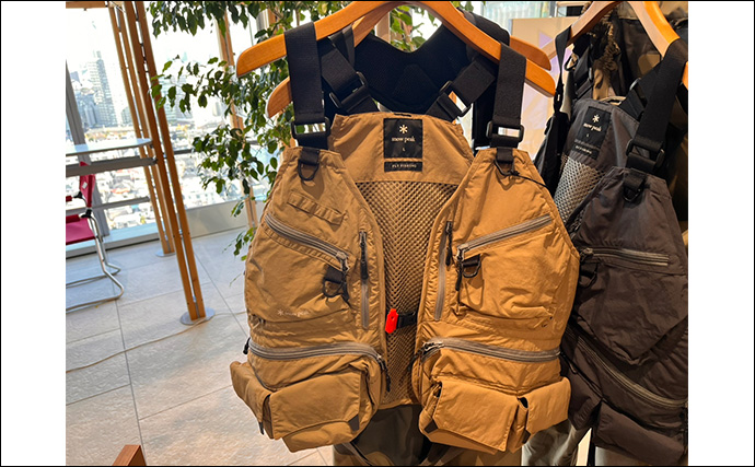 「V1 Strap Flyfishing Vest」は、スノーピークの代表的なアパレルアイテム「TAKIBI Vest」から着想を得て作ったのが、このフィッシングベストで、市場にあまりない肩ベルト仕様を採用しているのが特徴だ。