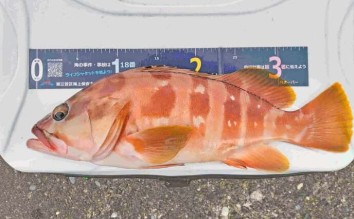 ゲストのイスズミ(提供:週刊つりニュース関東版・早田年秀)ポイント移動しアカハタキャッチ