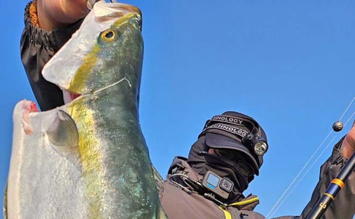 和歌山・串本のカセ釣りでワラサをキャッチ【南紀丸】1ヒロ毎のゆっくりな誘いが的中南紀さんのワラサ(提供:週刊つりニュース中部版APC・溝川弘巳)