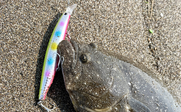 DAIWAのミノー「ショアラインシャイナーZ バーティス R125F」は飛距離とアクションのバランスが良く、価格も比較的手頃なため、コスパに優れていると感じました。特に遠浅サーフでは、底を擦らず絶妙なレンジをキープできるのが魅力的。実際にヒラメを数枚キャッチすることができました。