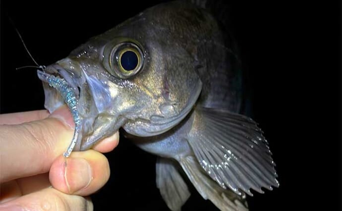 メバルはバチ抜けパターンに入る魚で、多毛類がふよふよと漂っている海では、姿が見えるほど露骨にパシャパシャとライズしていたりする。プランクトンの量が多くなり、ベイトフィッシュも寄ってくるこの時期のメバルが本当に何をメインベイトとしているかはわからないところがあるが、ともあれバチ抜けが見られたら、今が最盛と思って釣りまくろう。何せ、イソメやエビを食わない魚はいないのだ。