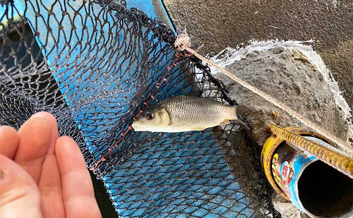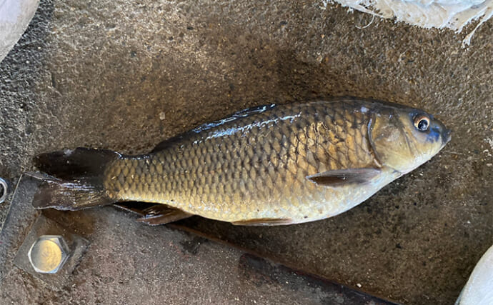 口が小さいこともあり、大抵は鯉が最後の一口を持って行くため、あまりその姿を見ません。全然釣れないわけではありませんが、それでも久々に釣ると、改めて綺麗な魚だと感じます。