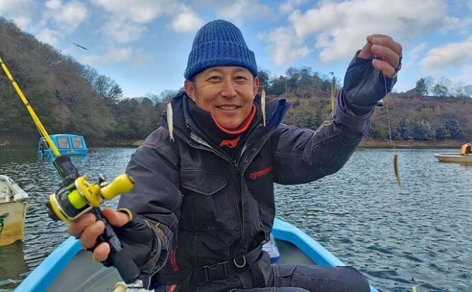手こぎボートでワカサギ釣りで3桁釣果【愛知・入鹿池】桟橋近くでコンスタントにアタリポツリポツリと4~8cmワカサギ(提供:週刊つりニュース中部版APC・渡邉 敦)