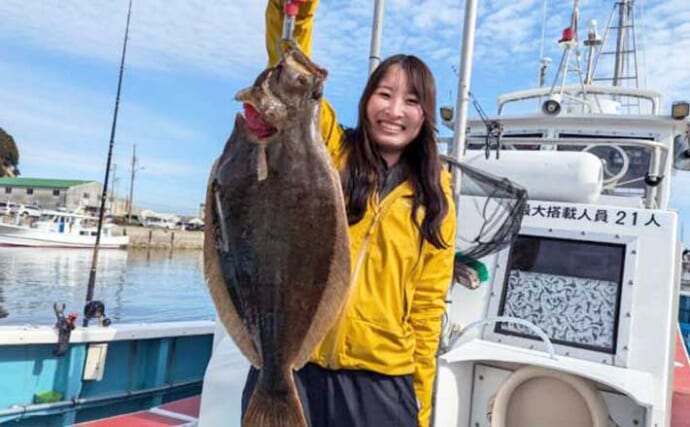 愛知県・南知多町片名漁港の優誠丸では、15日イワシの泳がせで出船。ベイトの小魚が豊富で、開始早々に周囲の船でブリが上がると、同船でも強烈なアタリでブリをキャッチ。続けて大型ヒラメも仕留めた。ベイトが豊富な今がチャンス。