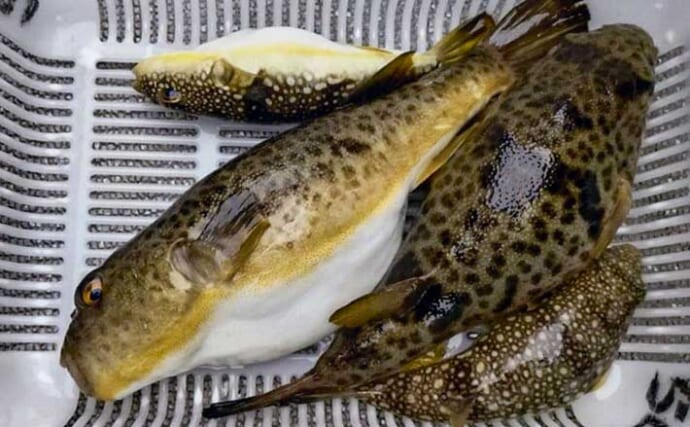 師崎沖でのカットウ釣りでジャンボヒガンフグ好捕【愛知・石川丸】ゲストにコモンフグ大満足のキャッチ(提供:週刊つりニュース中部版APC・山本嘉弘)