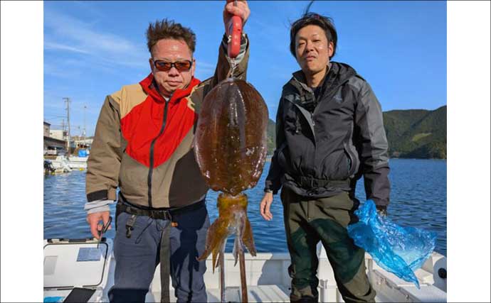 三重県・南伊勢町神津佐から出船している出船の名古丸では、10日にティップランで1.5kg頭にアオリイカ4匹が浮上。また、8日はアオリイカが爆釣し2.4kgと2.3kgの大物を含め船中18匹とナイスな釣果。うち10匹キロアップだった。このほか、タイラバではマダイなども釣れている。