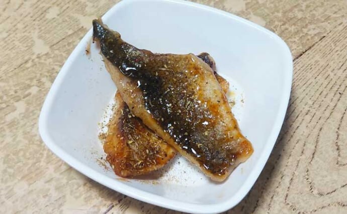 フライパンで焼く(提供:TSURINEWSライター松田正記)調味料を注ぐ
