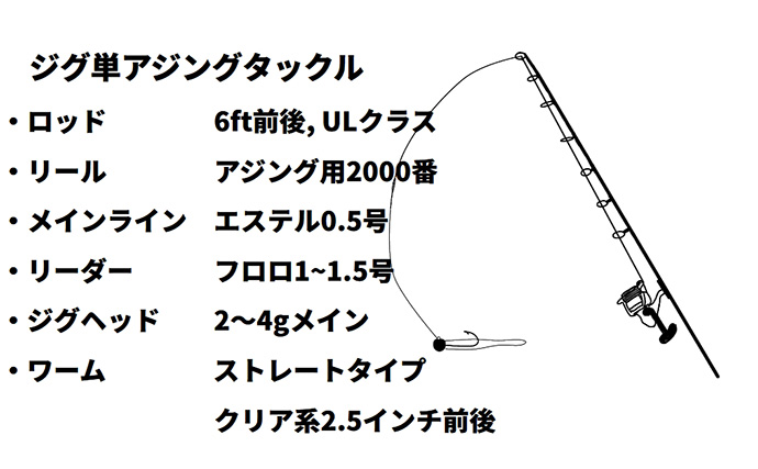 アジングタックル図(提供:TSURINEWSライター・ハマゴウ)ジグヘッドは重めを使用