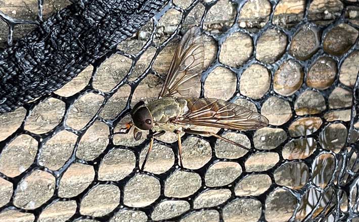 筆者を攻撃してきたアブ(提供:TSURINEWSライター・福岡崇史)水温が安定してくる梅雨頃にはエサ釣りではミミズが活躍する。特に雨の後など少し水が増える時期には特効餌となる事も多い。また、川虫も確保しやすくなる。カゲロウ類をはじめ、カワゲラなどバラエティーに富んだエサを捕食している事も多いので、様々なエサを準備する方がよいだろう。