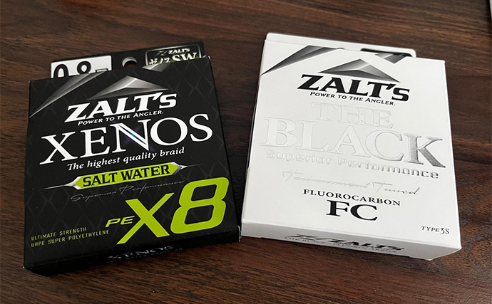 ZALT’s XENOS SW PEX8はソルトウォーター用のPEラインで、ZALT’s THE BLACK FCはバス用のフロロカーボンラインですが、ロックフィッシュゲームでも転用可能なのでは?と踏んで導入することに。