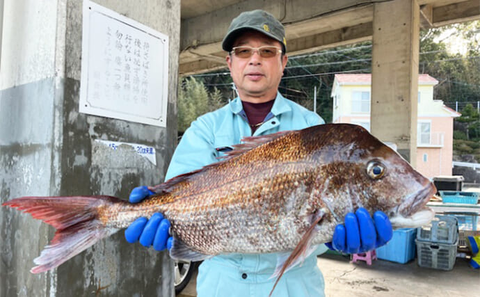 3月8日、佐賀県唐津市鎮西町串浦から勇勝丸が壱岐周辺のタイ釣りに出船し、東島さんがマダイ5.4kgを釣り上げた。船中ではマダイが最大で6kg、福田さんが4.4kgの同船主催釣り大会のエントリーサイズまでが釣れた。9日は小副川さんがマダイ5.2kg、前田さんはマダイ4.9kgの釣果。釣り大会のマダイの部では12人がエントリーサイズを釣り上げている。