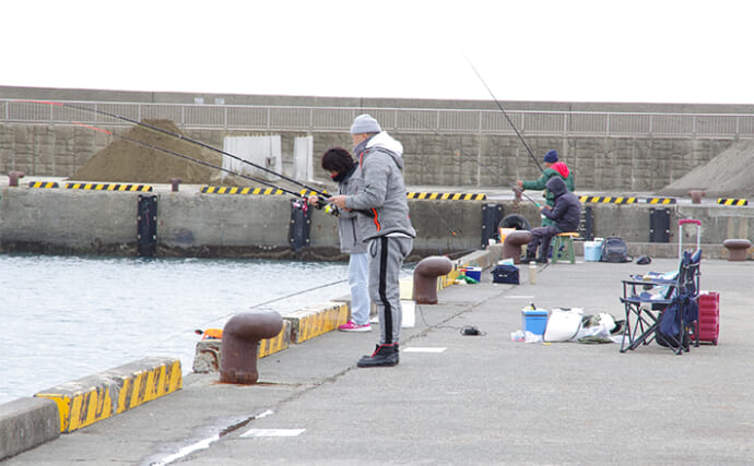 港から徒歩3分のところにすずき釣具店があり、毎日ホットな情報を提供。鈴木店主によると、「2月中は厳寒期とあって、アジやイワシ、シロギスが食い渋っていたが、水温が上昇傾向になると、魚の食い気が戻って釣果につながってくるだろう」とのこと。