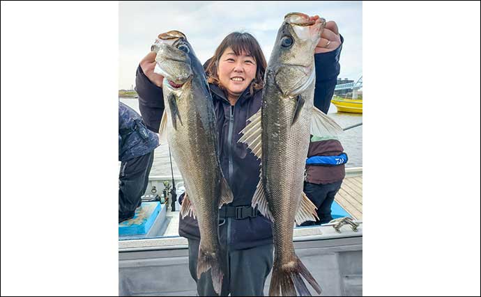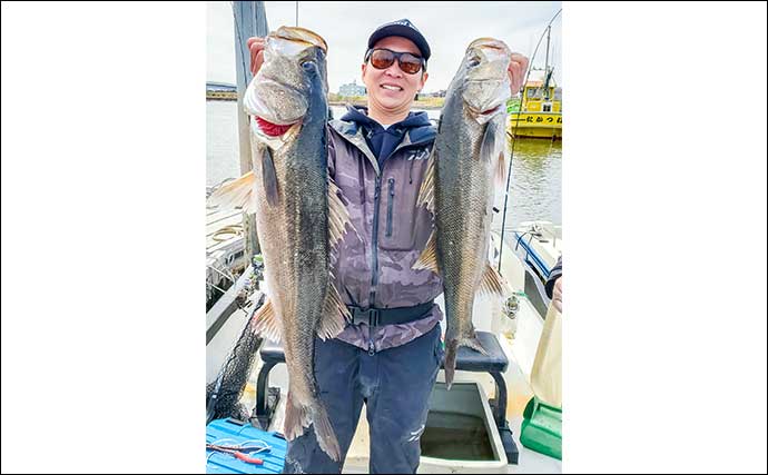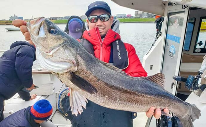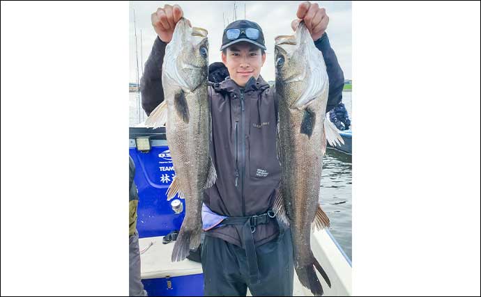 レジェンド村越正海さんも栗山艇から参戦(提供:週刊つりニュース関東版APC・奥野忠弘)ラスト5分で66cmシーバス