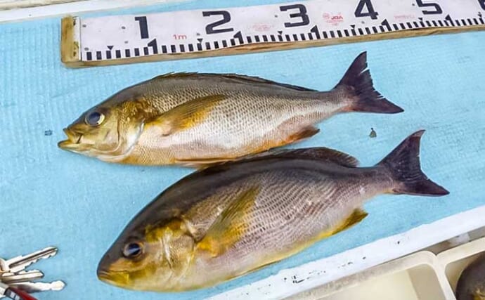 こんなジャンボサイズがそろった(提供:週刊つりニュース中部版APC・幡野晃彦)46cmイシダイ登場