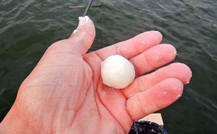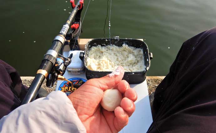 宙釣りマッシュ(提供:TSURINEWSライターなおぱぱ)準備中に常連と思われるヘラ師が来たので情報を聞くとどうやら居るとの認識らしい。水深を測ると3m強なのでタナは2mではじめていき宙層マッシュの釣りで豪快にエサを打っていく。