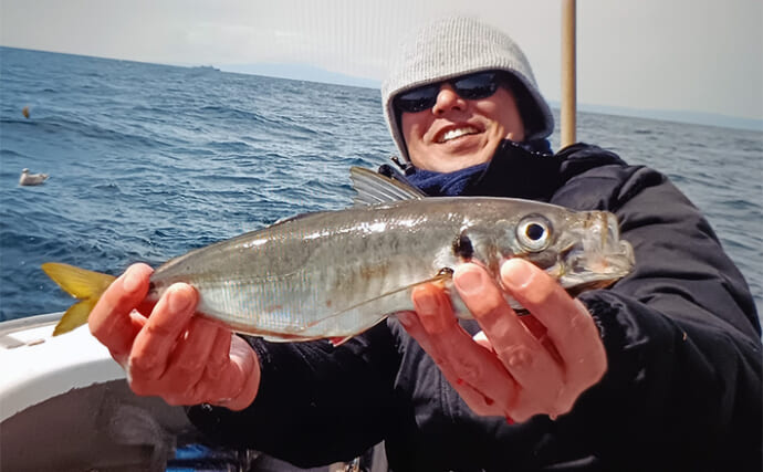 3月18日(火)、相模湾小坪の洋征丸からアジ・マダイ五目に行ってきた。序盤は低水温の影響で苦戦するも、城ヶ島沖で良型アジが連発!終盤にはカンパチも登場し、船中は盛り上がりを見せた。
