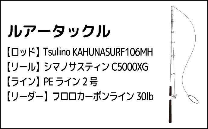 サゴシゲームのタックル(提供:TSURINEWSライター稲垣順也)あまり引きが強い魚ではないが、歯が鋭い魚のためリーダーは太め、フロロカーボンライン30lbクラスを使用した方がルアーロストは減る。