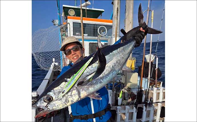 船中お祭り騒ぎ(提供:週刊つりニュース中部版APC・丸山敬太)そこからはさすが好調の志摩沖、飽きない程度に船中でヒットし、ダブルヒットやトリプルヒットなど盛り上がるタイミングもあった。時折魚探に反応が出たり、小規模なトリヤマが近くでできたりと、終始気配はムンムンだった。