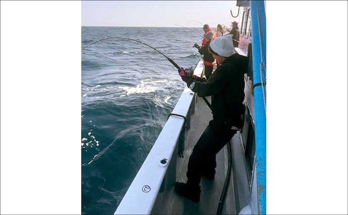 後半2連打(提供:週刊つりニュース中部版APC・丸山敬太)この交換が奏功し、後半に2匹追加。風も強くなり、少し早上がりの正午に納竿となった。結果として私は4匹、船中19匹とまずまずの釣果。数日前の爆発ほどではなかったが、これだけ釣れれば大満足。みんなでワイワイ楽しい釣行となった。