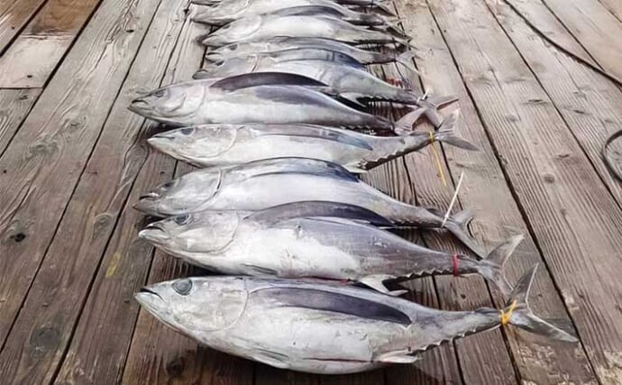 3月24日に三重県鳥羽市本浦港の遊漁船でトンジギに行ってきた。3月に入り、志摩沖のトンジギ(トンボジギング)が好調モードに突入。小型主体ながらも、船によっては100匹超の釣果を記録するなど、群れの濃さを実感させる状況が続いている。