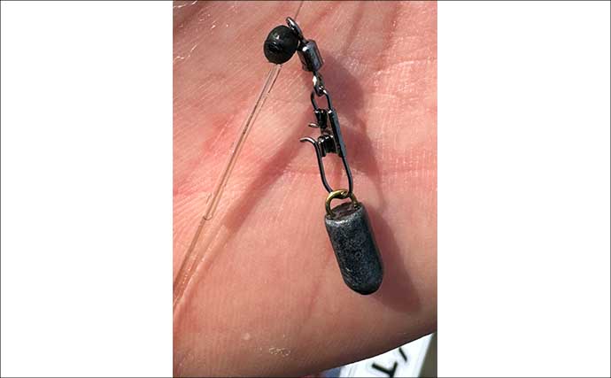 外通し仕掛け(提供:週刊へらニュース編集部 関口)「はい。昨年同様、スナップ付きサルカンを道糸に通しただけの外通し式です」
