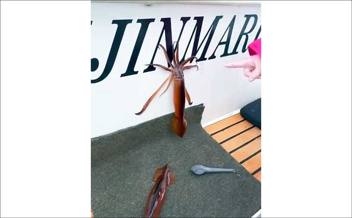 富山県・新湊マリーナの強神丸では29日スルメイカロング便で出船。開始早々から高活性で、多点掛けで好調にヒット。中盤はブランコ仕掛けが優勢となり、直結は苦戦気味。それでも後半にはプチラッシュが到来し、初挑戦者もしっかりお土産確保。サオ頭は直結縛りで64匹。