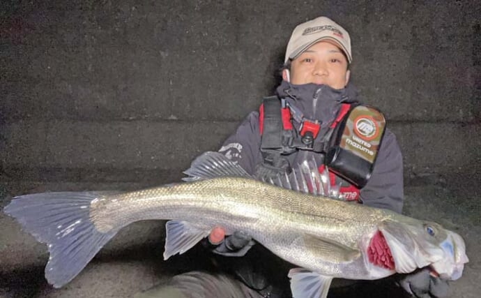 春らしいきれいな魚体(提供:週刊つりニュース中部版APC・積木 洋)河口部でシーバスゲット
