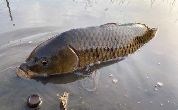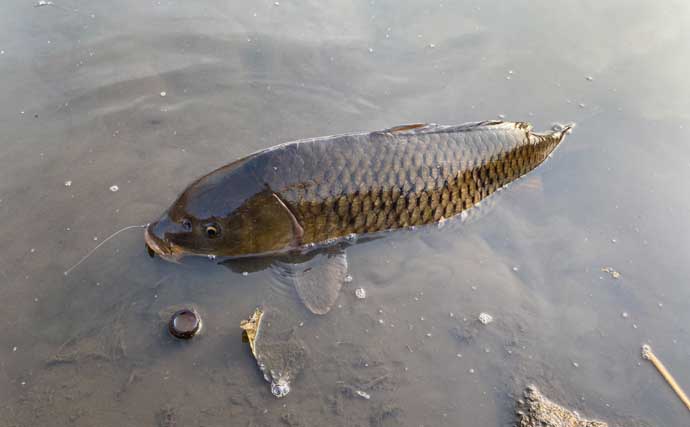 田んぼのホソでのパン鯉釣りで70cm級コイを手中 強風対策で水路移動が奏功コイキャッチ(提供:TSURINEWSライター泉陽登)