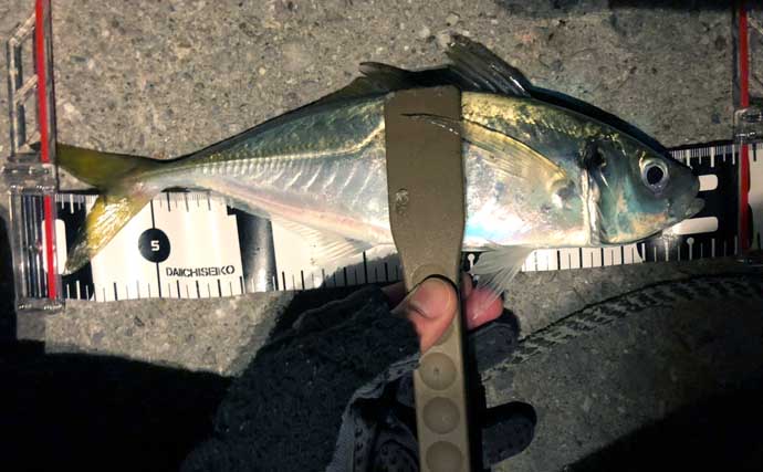 尺アジ(提供:TSURINEWSライター檜垣修平)30cmで尺アジ(メガアジ)、40cmでギガアジ、50cmテラアジとなる。尺アジはエリアによってはありふれた漁港にも居るのでそこまで釣るのは難しくなく、通常のアジングタックルでも十分キャッチできる。