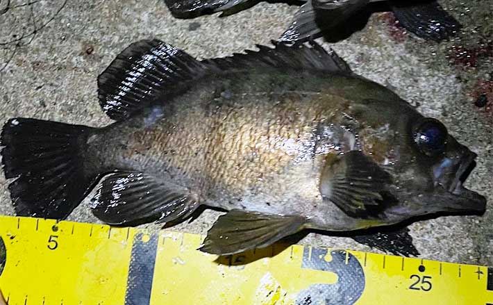 尺メバル(提供:TSURINEWSライター檜垣修平)30cmからのサイズがいわゆるランカークラスであり、通称尺メバル。メバルの成長速度は遅く、尺になるには10年以上掛かると言われている。それだけの期間を生き延びた尺サイズともなれば警戒心が高く、人の気配がある場所には基本的にはあまり寄り付かない。