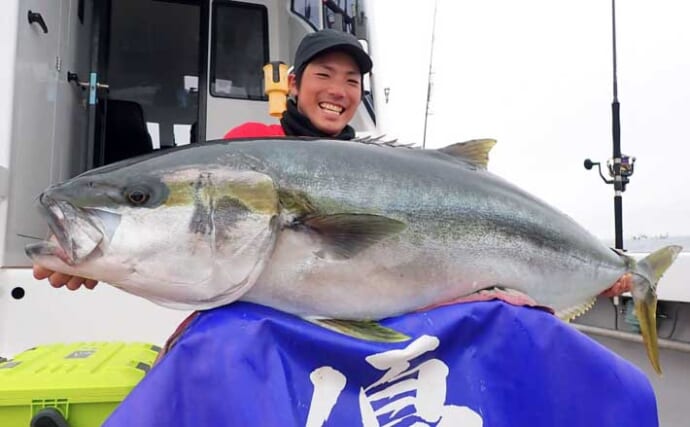 3月29日、北九州市若松区・北湊の光生丸がジギング・スロージギングで響灘へ出船。前半は反応や食いも悪かったため、迷いもあったが後半勝負にかけたところ船長の読みが的中。光生丸の大型記録更新に迫る特大ヒラマサ143cm26kgが浮上した。船長によると、その前にタモ入れ寸前で30kgクラスのバラシがあったとのこと。その後は1時間半ほどブリラッシュに突入し、こちらも13kg、12kg、11.5kg、11kgとビッグサイズが揃った。4月後半まではヒラマサ狙いで、その後はイサキ調査に入るとのこと。