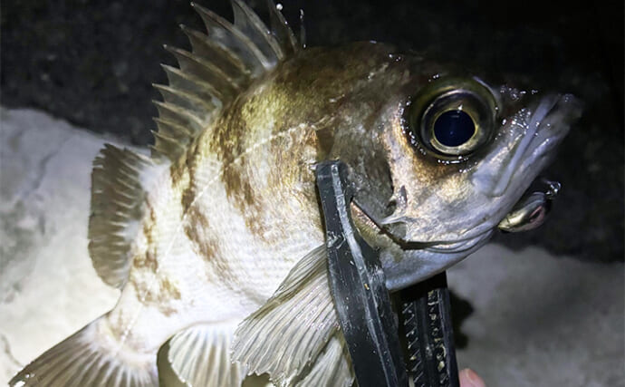 春のメバル登場(提供:TSURINEWSライター・井上海生)そこからにわかに時合いのような雰囲気になり、ルアーローテーションしながら合計7尾を連続でしとめた。やはり沈めると食ってこないので、本当に表層50cmとかそれくらいのレンジを離さずにリトリーブする。