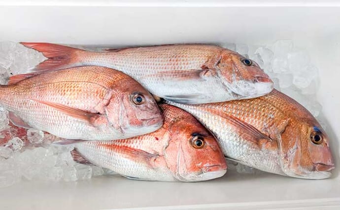 朝の時合いで仕留めた1匹目(提供:週刊つりニュース中部版APC・伊藤明洋)船中でマダイ連発