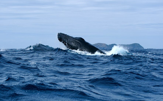 ザトウクジラは、長い胸びれと力強いジャンプ(ブリーチング)が特徴です。