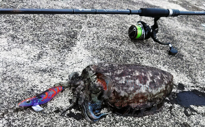 エギングでキャッチしたコウイカ(提供:TSURINEWSライター・稲垣順也)一人暮らしのため、釣果に食が追いつかない状態になり、毎日のおかずが釣魚という日々が始まった。