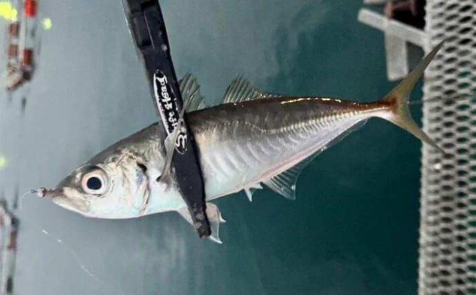 スローフォールで本命ヒット(提供:TSURINEWSライター・福岡崇)自作ジグヘッドでアジ連発