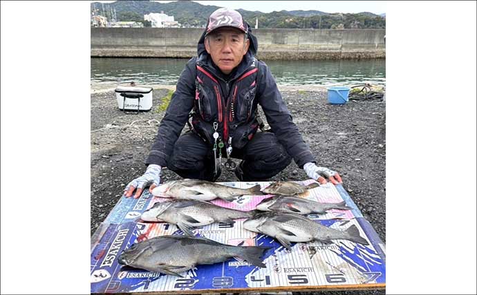 三重県志摩市御座の大伸丸渡船では、5日愛知の津田さんが磯で46cmを頭にクロダイ4匹をゲット。グレ45cmも手中に。愛知の伊志嶺さんもクロダイ48、42cmを上げている。