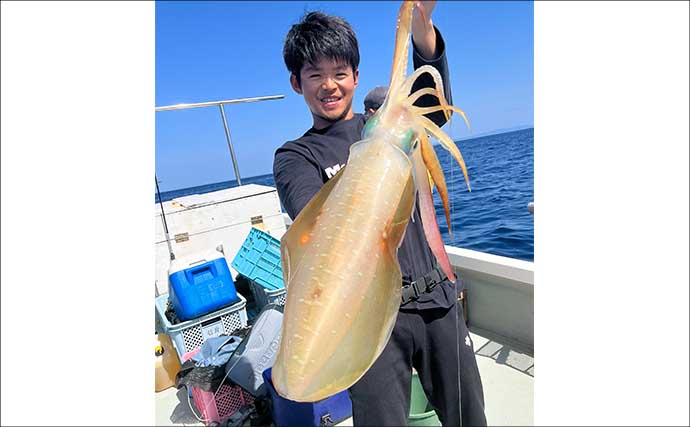 特大アオリ(提供:TSURINEWSライター杉浦永)なぜなら、沖縄のアオリイカはレッドモンスター(赤イカ系)の種類が多く、赤イカ系のアオリイカはサイズが大きく成長しやすいという特徴があります。