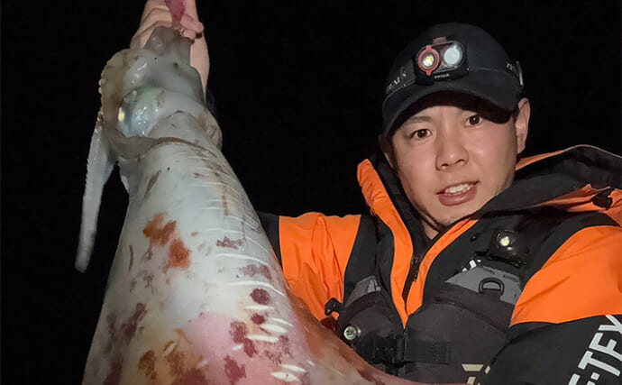 幸先よく2kgアップを手中(提供:TSURINEWSライター・佐々木智成)そこから1kgほどのアオリイカ、コブシメを2杯追加しました。