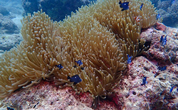 通常の魚では有毒のイソギンチャクと共生関係を築くことできませんが、クマノミ類はイソギンチャクの触手に刺されることはありません。むしろ、イソギンチャクを隠れ家として利用するほか、共生イソギンチャクの種類によってはクマノミ類が繁殖場所として用いる場合もあるようです。